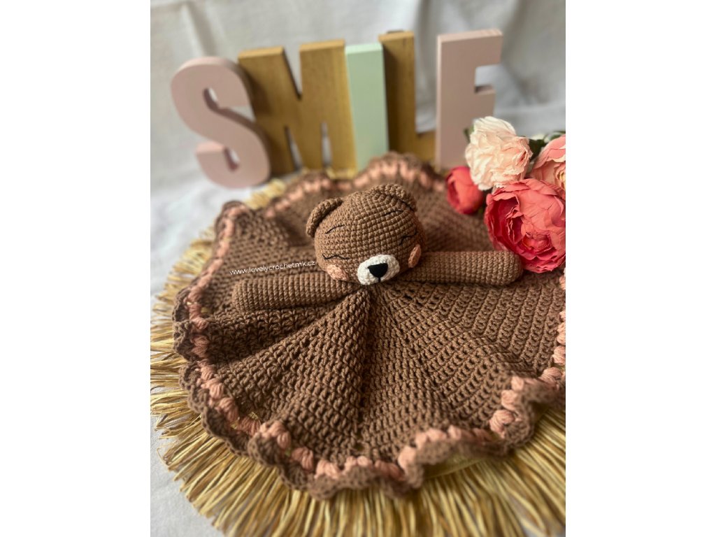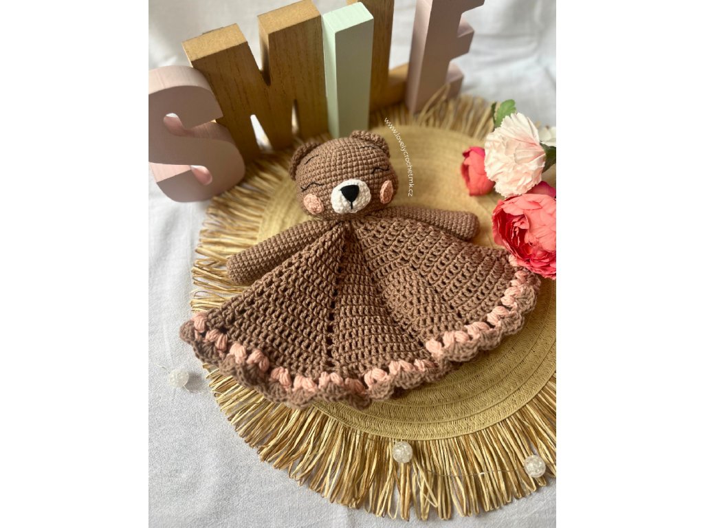 Háčkovaný usínáček medvídek s dečkou se srdíčky - NÁVOD